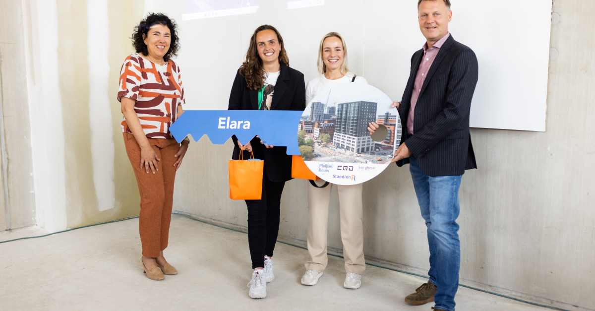 Op de hoek van de Maanweg en Regulusweg in de Binckhorst in Den Haag realiseerde projectontwikkelaars Borghese en COD voor woningcorporatie Staedion 140 betaalbare, sociale huurwoningen en twee bedrijfsruimtes van in totaal 382 m2. Het nieuwe woongebouw, genaamd Elara, vormt met haar hoogte van ongeveer 50 meter een eyecatcher en daarmee de entree van de Binckhorst. Gisteren was de feestelijke oplevering van de nieuwe woningen. De eerste bewoners ontvingen uit handen van Gijsbert van Herk, bestuursvoorzitter Staedion, hun sleutel.